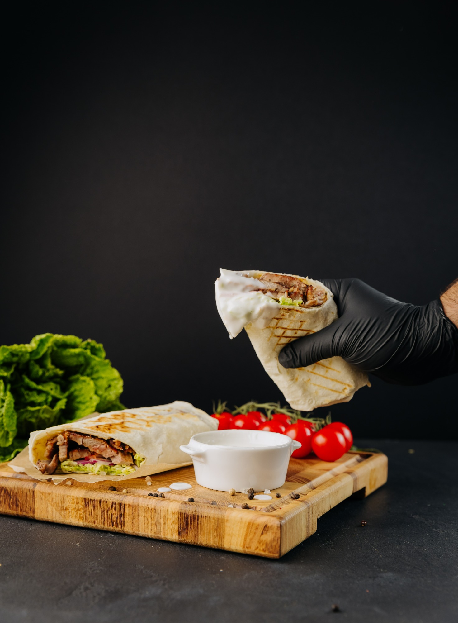 to idealna opcja na wynos – zawinięty w cienki placek, pełen mięsa, warzyw i sosu, wygodny do zjedzenia w każdej chwili. 🌯